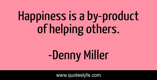 This page presents the quote "Happiness is a by-product of helping others.". Author of this quote is Denny Miller. .