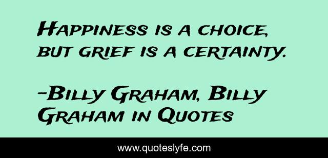 This page presents the quote "Happiness is a choice, but grief is a certainty.". Author of this quote is Billy Graham, Billy Graham in Quotes. This quote is about happiness, billy-graham,.