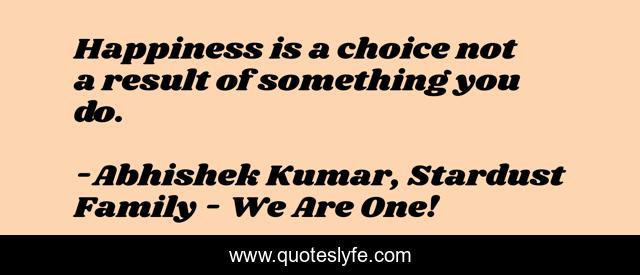 "Abhishek Kumar, Stardust Family - We Are One! Quotes." Quoteslyfe.com, 2025. Fri. 05 Dec. 2025. <https://www.quoteslyfe.com/quote/Happiness-is-a-choice-not-a-result-184702>.