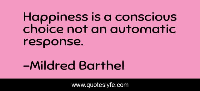 This page presents the quote "Happiness is a conscious choice not an automatic response.". Author of this quote is Mildred Barthel. This quote is about self, reliance,.