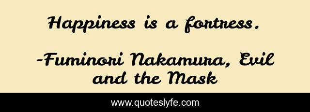 This page presents the quote "Happiness is a fortress.". Author of this quote is Fuminori Nakamura, Evil and the Mask. This quote is about good-and-evil, anarchy, happiness, nihilism,.