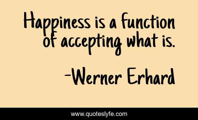 This page presents the quote "Happiness is a function of accepting what is.". Author of this quote is Werner Erhard. .