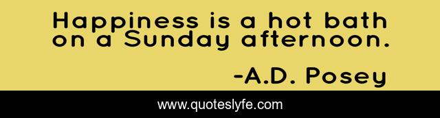 This page presents the quote "Happiness is a hot bath on a Sunday afternoon.". Author of this quote is A.D. Posey. This quote is about storytelling, storytellers, sunday, bath, write, hot, writers, ad-posey, afternoon,.
