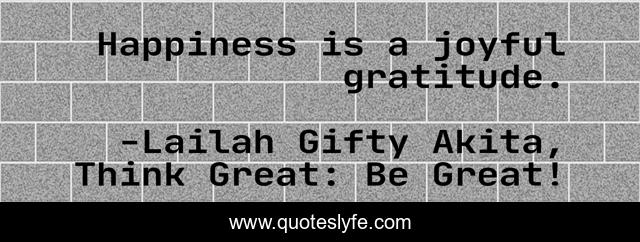 "Lailah Gifty Akita, Think Great: Be Great! Quotes." Quoteslyfe.com, 2025. Sat. 06 Dec. 2025. <https://www.quoteslyfe.com/quote/Happiness-is-a-joyful-gratitude-78236>.