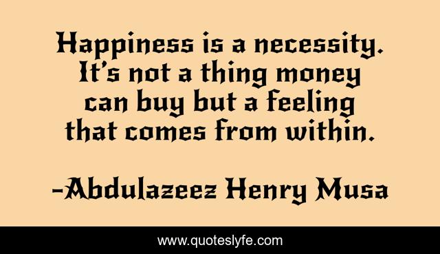 This page presents the quote "Happiness is a necessity. It’s not a thing money can buy but a feeling that comes from within.". Author of this quote is Abdulazeez Henry Musa. .