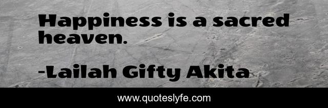 "Lailah Gifty Akita Quotes." Quoteslyfe.com, 2025. Sun. 07 Dec. 2025. <https://www.quoteslyfe.com/quote/Happiness-is-a-sacred-heaven-77998>.