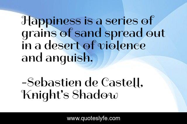 This page presents the quote "Happiness is a series of grains of sand spread out in a desert of violence and anguish.". Author of this quote is Sebastien de Castell, Knight's Shadow. .
