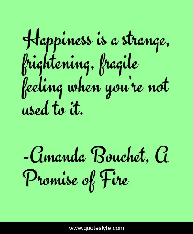 "Amanda Bouchet, A Promise of Fire Quotes." Quoteslyfe.com, 2025. Sat. 06 Dec. 2025. <https://www.quoteslyfe.com/quote/Happiness-is-a-strange-frightening-fragile-feeling-45884>.