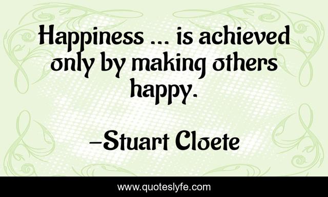 This page presents the quote "Happiness ... is achieved only by making others happy.". Author of this quote is Stuart Cloete. .
