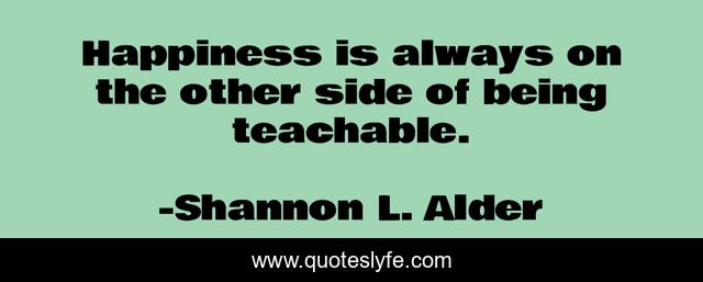 This page presents the quote "Happiness is always on the other side of being teachable.". Author of this quote is Shannon L. Alder. This quote is about teachable, observant, leading, humility, open-to-suggestions, acceptan, approachable, broad-minded, interested,.