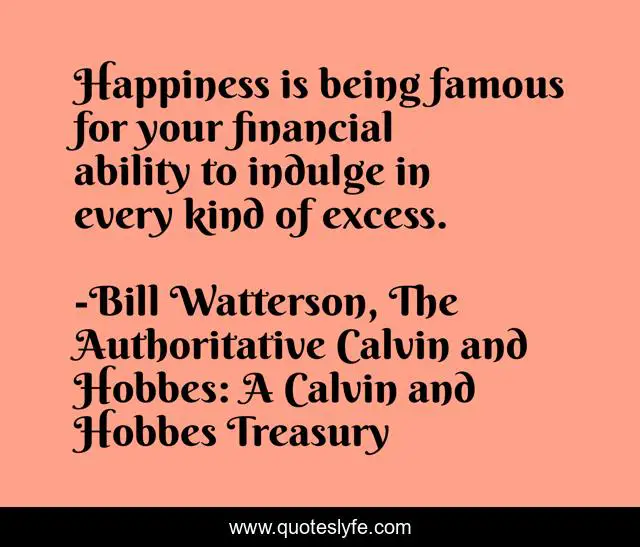 "Bill Watterson, The Authoritative Calvin and Hobbes: A Calvin and Hobbes Treasury Quotes." Quoteslyfe.com, 2025. Sat. 06 Dec. 2025. <https://www.quoteslyfe.com/quote/Happiness-is-being-famous-for-your-financial-7101>.