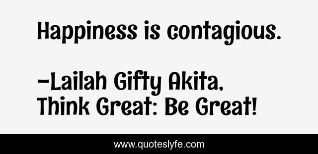 "Lailah Gifty Akita, Think Great: Be Great! Quotes." Quoteslyfe.com, 2025. Mon. 08 Dec. 2025. <https://www.quoteslyfe.com/quote/Happiness-is-contagious-94954>.