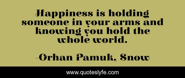 "Orhan Pamuk, Snow Quotes." Quoteslyfe.com, 2025. Mon. 08 Dec. 2025. <https://www.quoteslyfe.com/quote/Happiness-is-holding-someone-in-your-arms-149>.