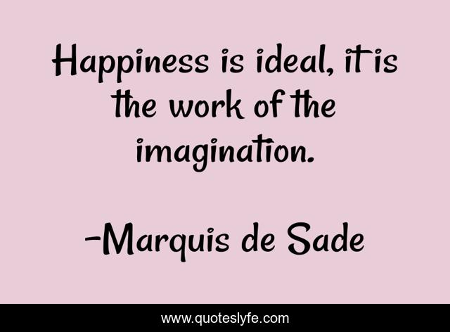 This page presents the quote "Happiness is ideal, it is the work of the imagination.". Author of this quote is Marquis de Sade. This quote is about imagination, ideal, work,.