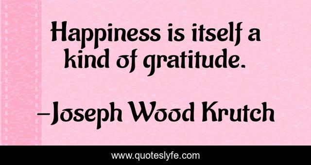 This page presents the quote "Happiness is itself a kind of gratitude.". Author of this quote is Joseph Wood Krutch. This quote is about gratitude, happiness,.