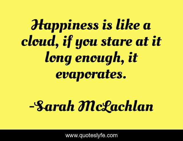 This page presents the quote "Happiness is like a cloud, if you stare at it long enough, it evaporates.". Author of this quote is Sarah McLachlan. This quote is about long, cloud,.