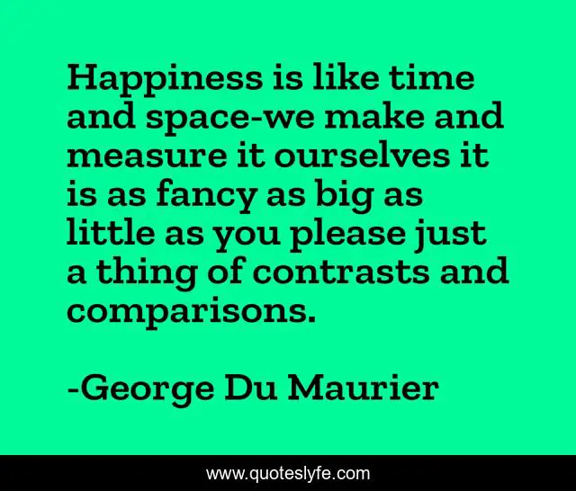 This page presents the quote "Happiness is like time and space-we make and measure it ourselves it is as fancy as big as little as you please just a thing of contrasts and comparisons.". Author of this quote is George Du Maurier. This quote is about self, reliance,.