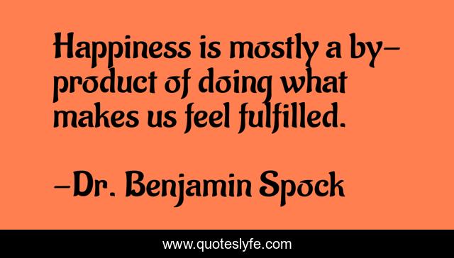 This page presents the quote "Happiness is mostly a by-product of doing what makes us feel fulfilled.". Author of this quote is Dr. Benjamin Spock. .