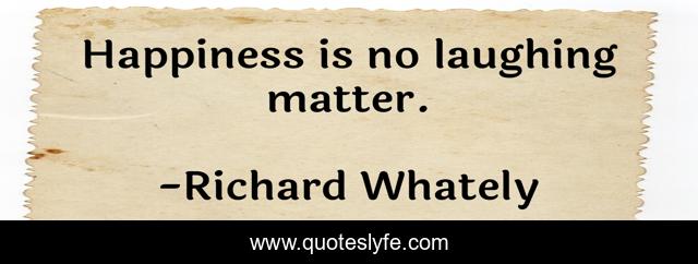 This page presents the quote "Happiness is no laughing matter.". Author of this quote is Richard Whately. This quote is about matter, laughing,.