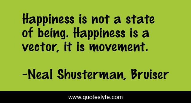 This page presents the quote "Happiness is not a state of being. Happiness is a vector, it is movement.". Author of this quote is Neal Shusterman, Bruiser. .