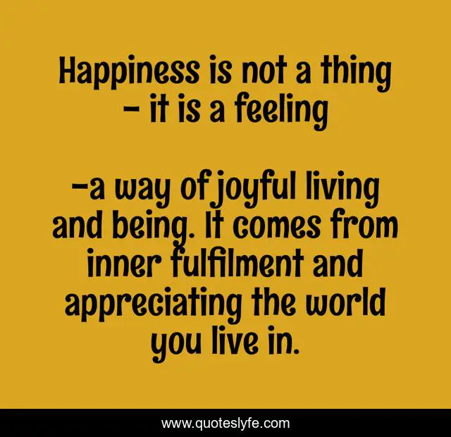 "a way of joyful living and being. It comes from inner fulfilment and appreciating the world you live in. Quotes." Quoteslyfe.com, 2025. Sat. 06 Dec. 2025. <https://www.quoteslyfe.com/quote/Happiness-is-not-a-thing-it-is-17607>.