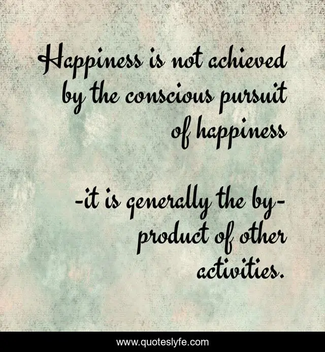 "it is generally the by-product of other activities. Quotes." Quoteslyfe.com, 2025. Sat. 06 Dec. 2025. <https://www.quoteslyfe.com/quote/Happiness-is-not-achieved-by-the-conscious-16065>.