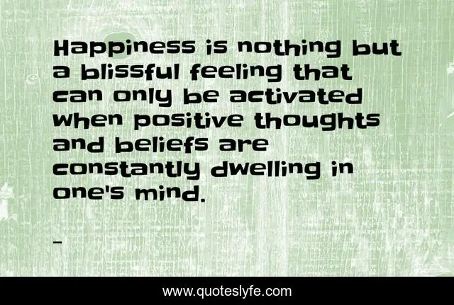 Happiness is nothing but a blissful feeling that can only be activated when positive thoughts and beliefs are constantly dwelling in one's mind.
