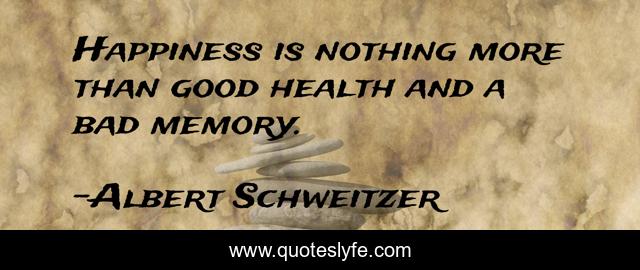 This page presents the quote "Happiness is nothing more than good health and a bad memory.". Author of this quote is Albert Schweitzer. .