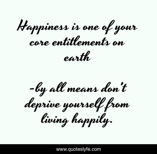 "by all means don't deprive yourself from living happily. Quotes." Quoteslyfe.com, 2025. Sun. 07 Dec. 2025. <https://www.quoteslyfe.com/quote/Happiness-is-one-of-your-core-entitlements-170511>.