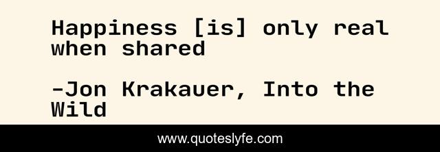 "Jon Krakauer, Into the Wild Quotes." Quoteslyfe.com, 2025. Fri. 05 Dec. 2025. <https://www.quoteslyfe.com/quote/Happiness-is-only-real-when-shared-130>.