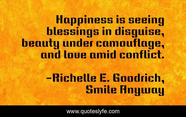"Richelle E. Goodrich, Smile Anyway Quotes." Quoteslyfe.com, 2025. Sat. 06 Dec. 2025. <https://www.quoteslyfe.com/quote/Happiness-is-seeing-blessings-in-disguise-beauty-189511>.
