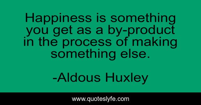 This page presents the quote "Happiness is something you get as a by-product in the process of making something else.". Author of this quote is Aldous Huxley. .