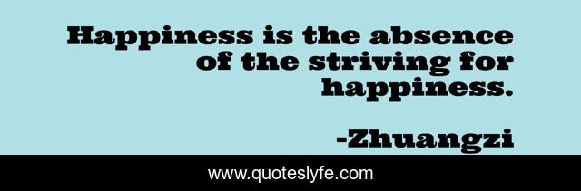 This page presents the quote "Happiness is the absence of the striving for happiness.". Author of this quote is Zhuangzi. This quote is about absence, striving,.