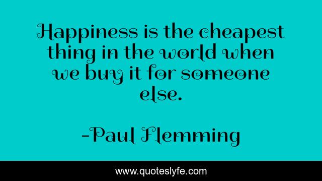 This page presents the quote "Happiness is the cheapest thing in the world when we buy it for someone else.". Author of this quote is Paul Flemming. This quote is about helping, people,.