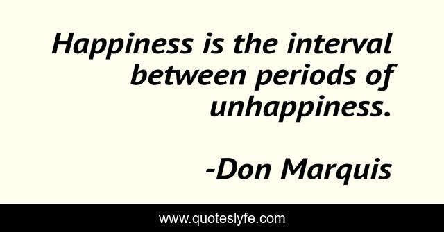 This page presents the quote "Happiness is the interval between periods of unhappiness.". Author of this quote is Don Marquis. .