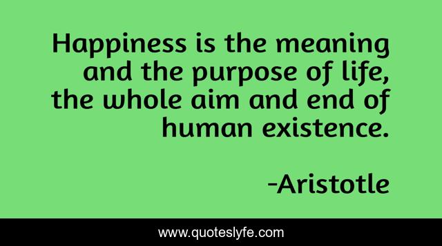 This page presents the quote "Happiness is the meaning and the purpose of life, the whole aim and end of human existence.". Author of this quote is Aristotle. .