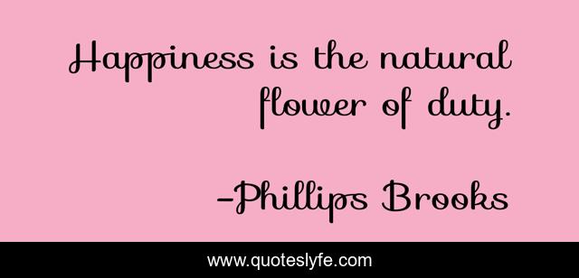 This page presents the quote "Happiness is the natural flower of duty.". Author of this quote is Phillips Brooks. .