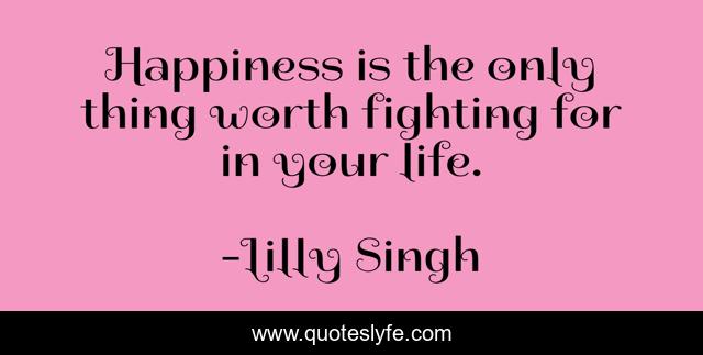 This page presents the quote "Happiness is the only thing worth fighting for in your life.". Author of this quote is Lilly Singh. This quote is about life, worth, fighting,.