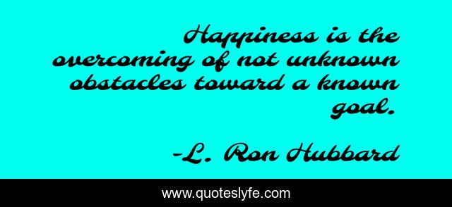 This page presents the quote "Happiness is the overcoming of not unknown obstacles toward a known goal.". Author of this quote is L. Ron Hubbard. .