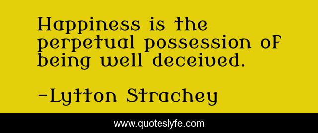 This page presents the quote "Happiness is the perpetual possession of being well deceived.". Author of this quote is Lytton Strachey. .