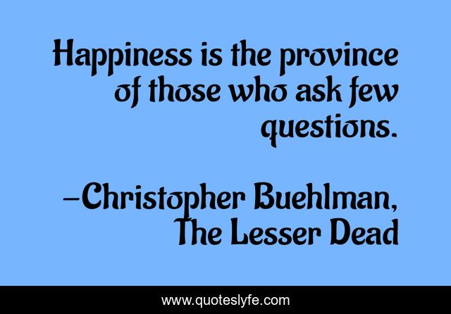 This page presents the quote "Happiness is the province of those who ask few questions.". Author of this quote is Christopher Buehlman, The Lesser Dead. This quote is about undead, life, vampires, human-nature, question, dead, lesser, happiness,.