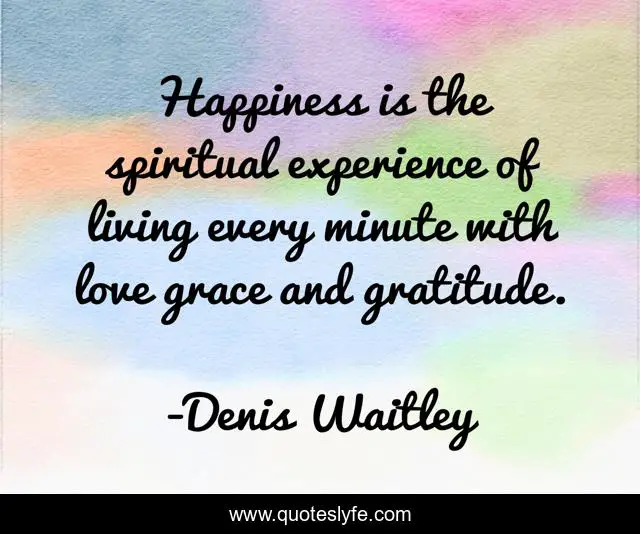 This page presents the quote "Happiness is the spiritual experience of living every minute with love grace and gratitude.". Author of this quote is Denis Waitley. .