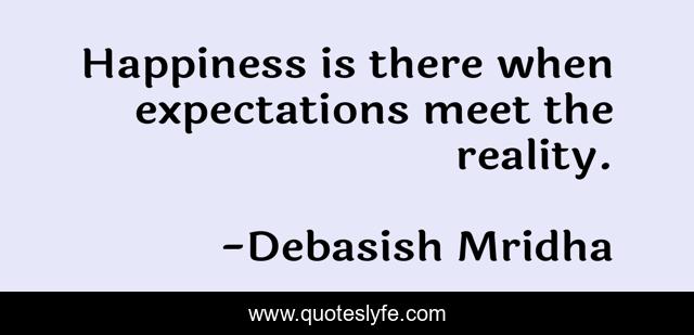 This page presents the quote "Happiness is there when expectations meet the reality.". Author of this quote is Debasish Mridha. This quote is about life, education, love, knowledge, inspirational, intelligence, philosophy, expectation, reality,.