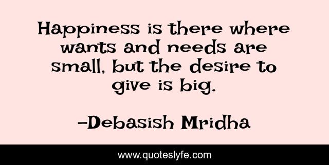 "Debasish Mridha Quotes." Quoteslyfe.com, 2025. Fri. 05 Dec. 2025. <https://www.quoteslyfe.com/quote/Happiness-is-there-where-wants-and-needs-145705>.
