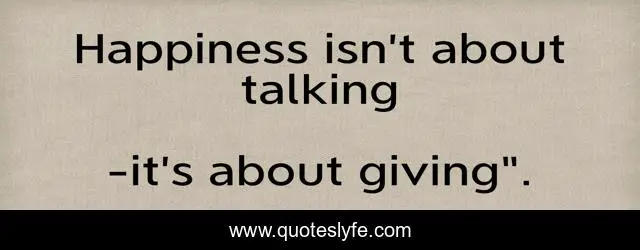 "it’s about giving”. Quotes." Quoteslyfe.com, 2025. Fri. 05 Dec. 2025. <https://www.quoteslyfe.com/quote/Happiness-isn-t-about-talking-239956>.