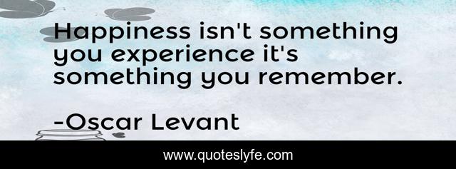 This page presents the quote "Happiness isn't something you experience it's something you remember.". Author of this quote is Oscar Levant. This quote is about remember, experience,.