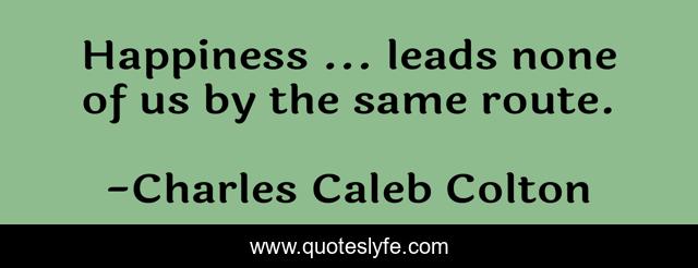 This page presents the quote "Happiness ... leads none of us by the same route.". Author of this quote is Charles Caleb Colton. .