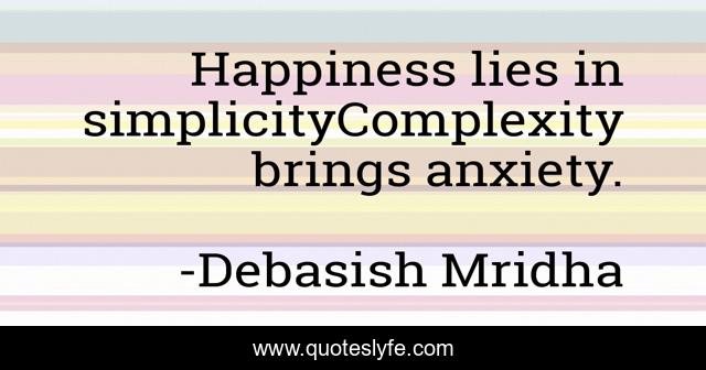 This page presents the quote "Happiness lies in simplicityComplexity brings anxiety.". Author of this quote is Debasish Mridha. This quote is about simplicity, life, anxiety, mridha, philosophy, complexity, debasish, happiness,.