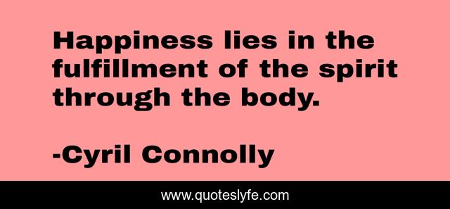 This page presents the quote "Happiness lies in the fulfillment of the spirit through the body.". Author of this quote is Cyril Connolly. .