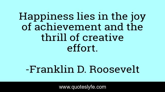This page presents the quote "Happiness lies in the joy of achievement and the thrill of creative effort.". Author of this quote is Franklin D. Roosevelt. .